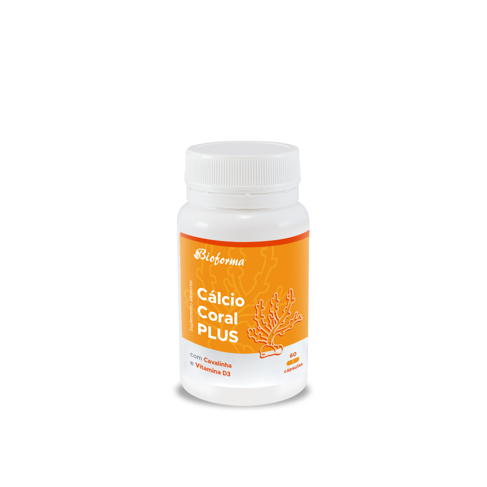 Cálcio Coral Plus, da Bioforma, é um suplemento natural composto por cálcio de coral (fonte natural de carbonato de Cálcio*), Cavalinha e Vitamina D3** (Colecalciferol).