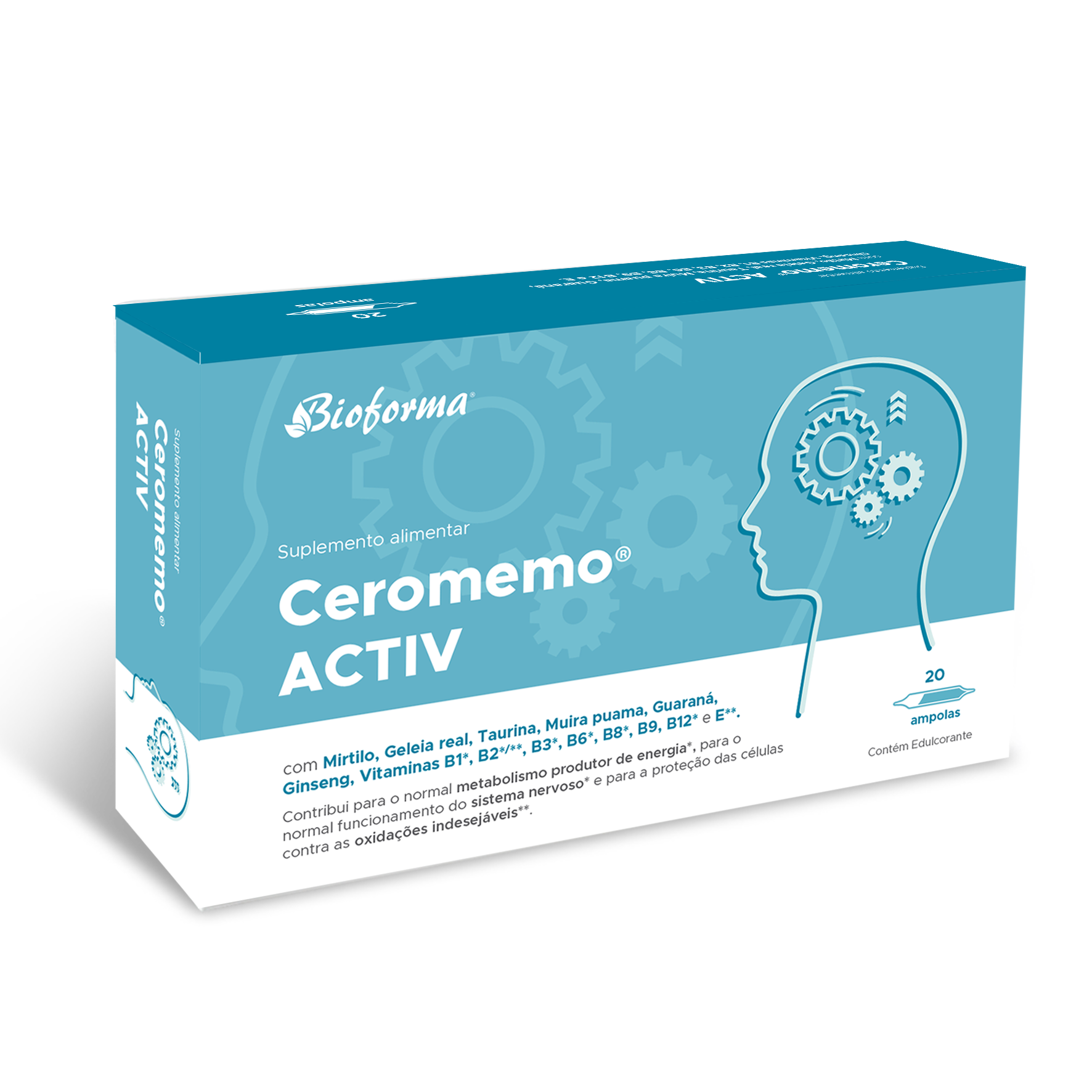 CeromemoActiv, ampolas, da Bioforma é um suplemento alimentar à base de sumo de mirtilo, Geleia Real, Muira Puama, Guaraná, Ginseng, Carnitina, Taurina e por uma série de Vitaminas (B1, B3, B6, B12) que visam contribuir para para o normal metabolismo produtor de energia, para a redução do cansaço e da fadiga, para uma normal função psicológica e para o normal funcionamento do sistema nervoso.