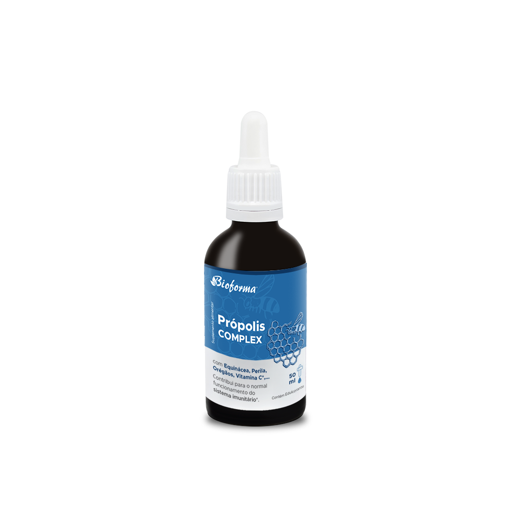 Própolis COMPLEX da Bioforma é um suplemento alimentar à base de própolis, equinácea, perila, oregãos, sabugueiro e vitamina C. A Vitamina C contribui para manter o normal funcionamento do sistema imunitário.