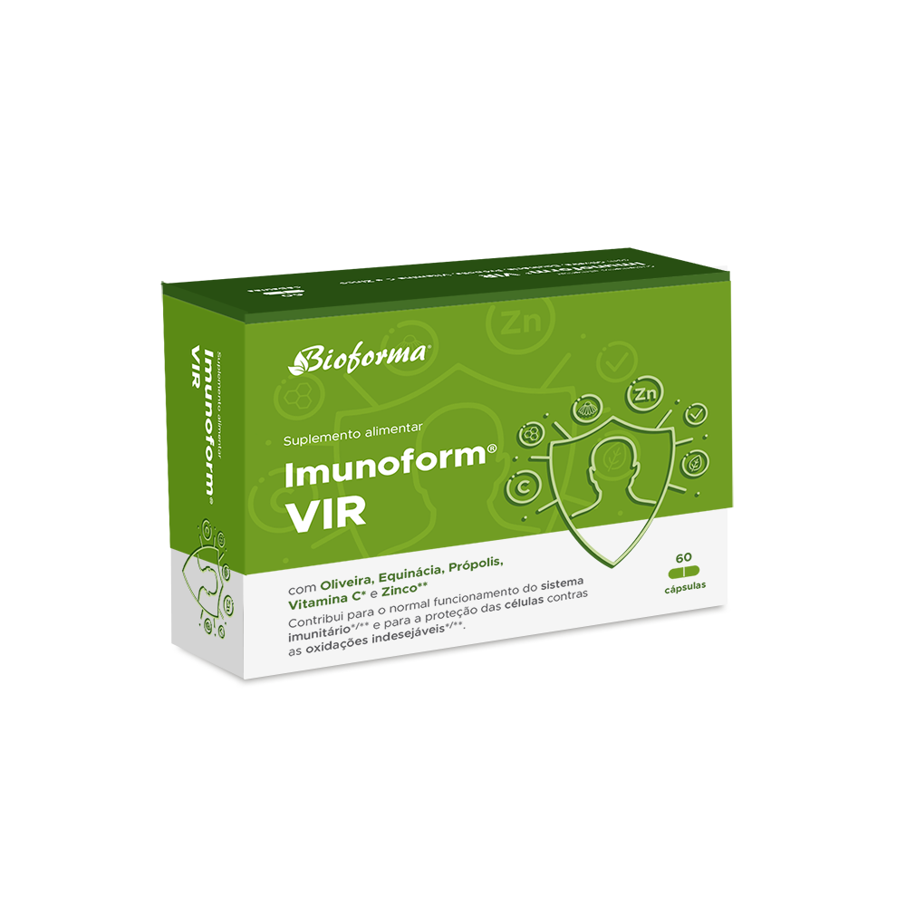 Imunoform® VIR, da Bioforma é um suplemento natural à base de extrato de oliveira, equinácea, vitamina C, zinco e extrato de própolis. A vitamina C e o zinco contribuem para o normal funcionamento do sistema imunitário.
