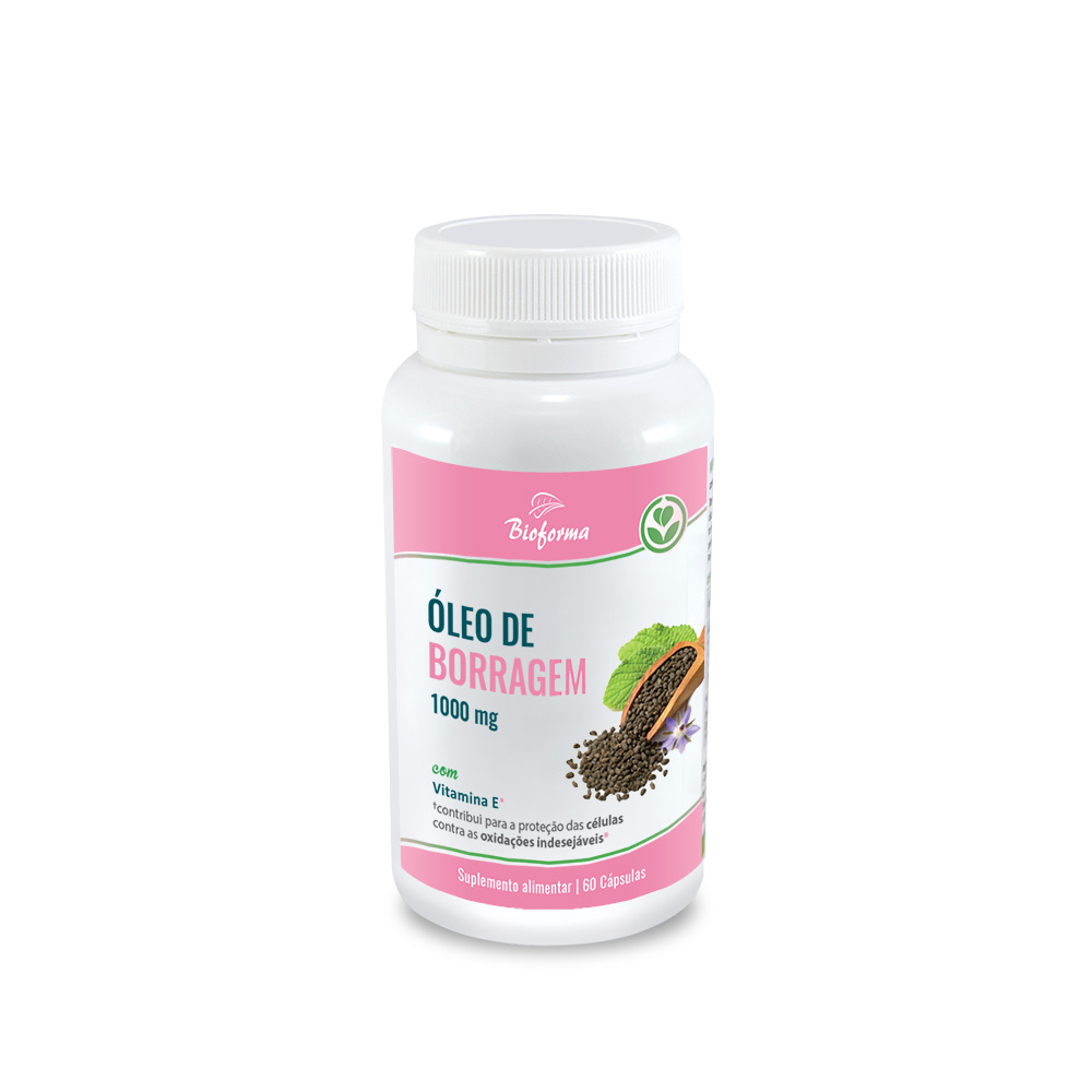 Borago officinalis. As sementes de Borragem são uma fonte natural de Ácido Gama Linolénico (20% GLA). Cada cápsula fornece 1000mg de óleo de Borragem, dos quais 200mg correspondem a GLA. Este suplemento é também uma fonte natural de Vitamina E. A vitamina E contribui para a proteção das células contra as oxidações indesejáveis.