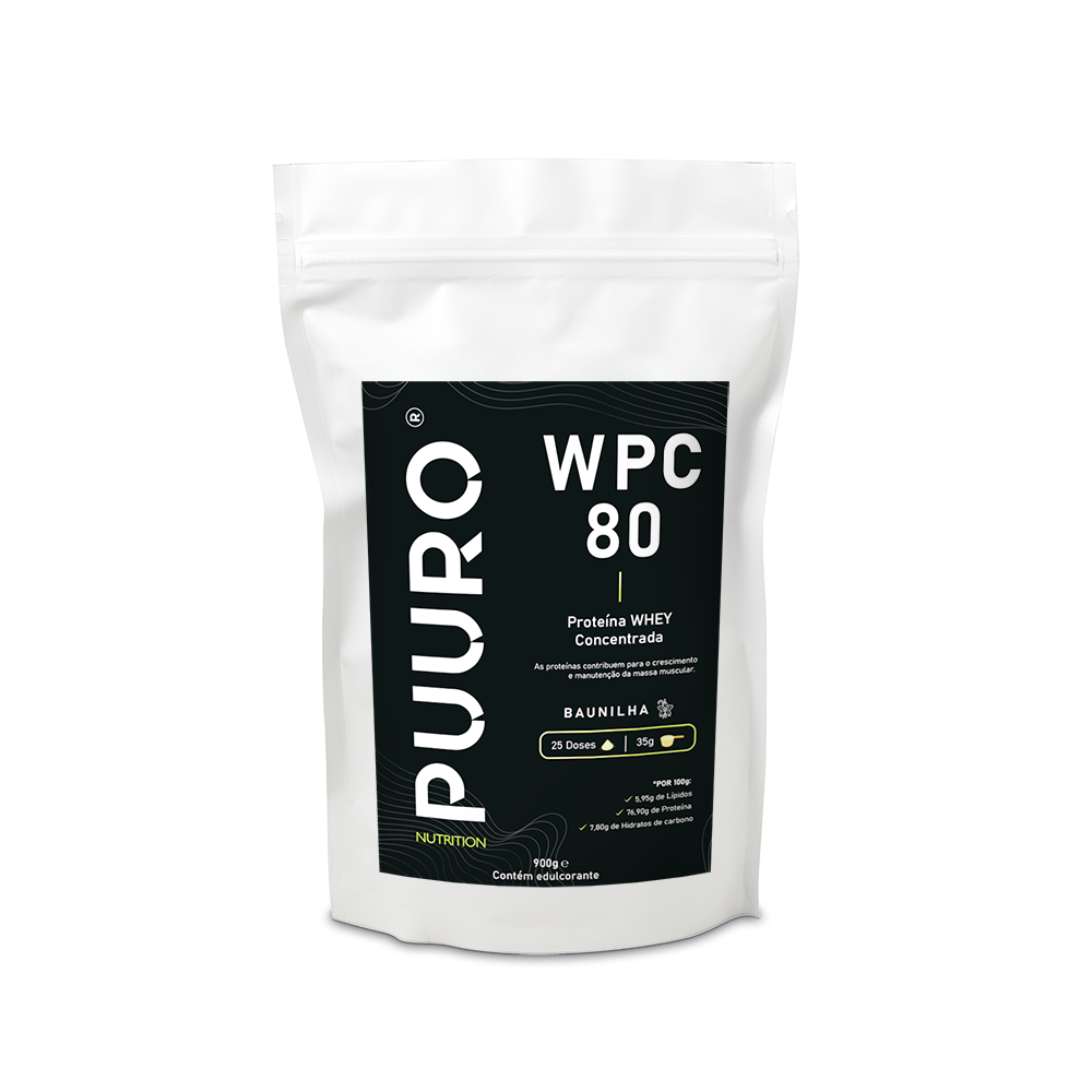WPC 80 da PUURO NUTRITION é composto por Proteína Whey (do soro do leite) na sua forma Concentrada.