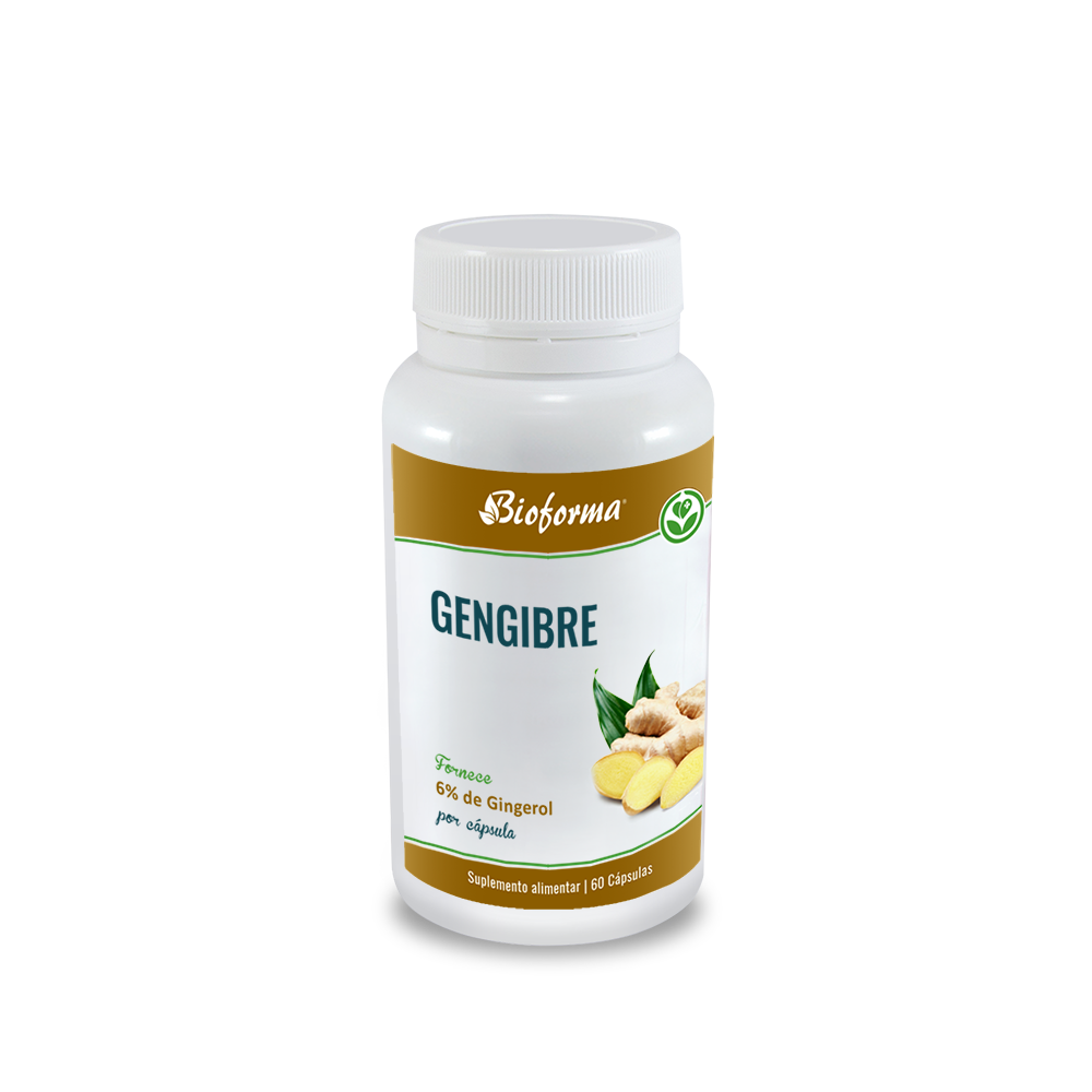Suplemento alimentar composto por extrato seco de gengibre, Zingiber officinalis. Cada cápsula fornece 500mg de extrato seco de gengibre, contendo 6% de Gingerol (principal constituinte ativo).