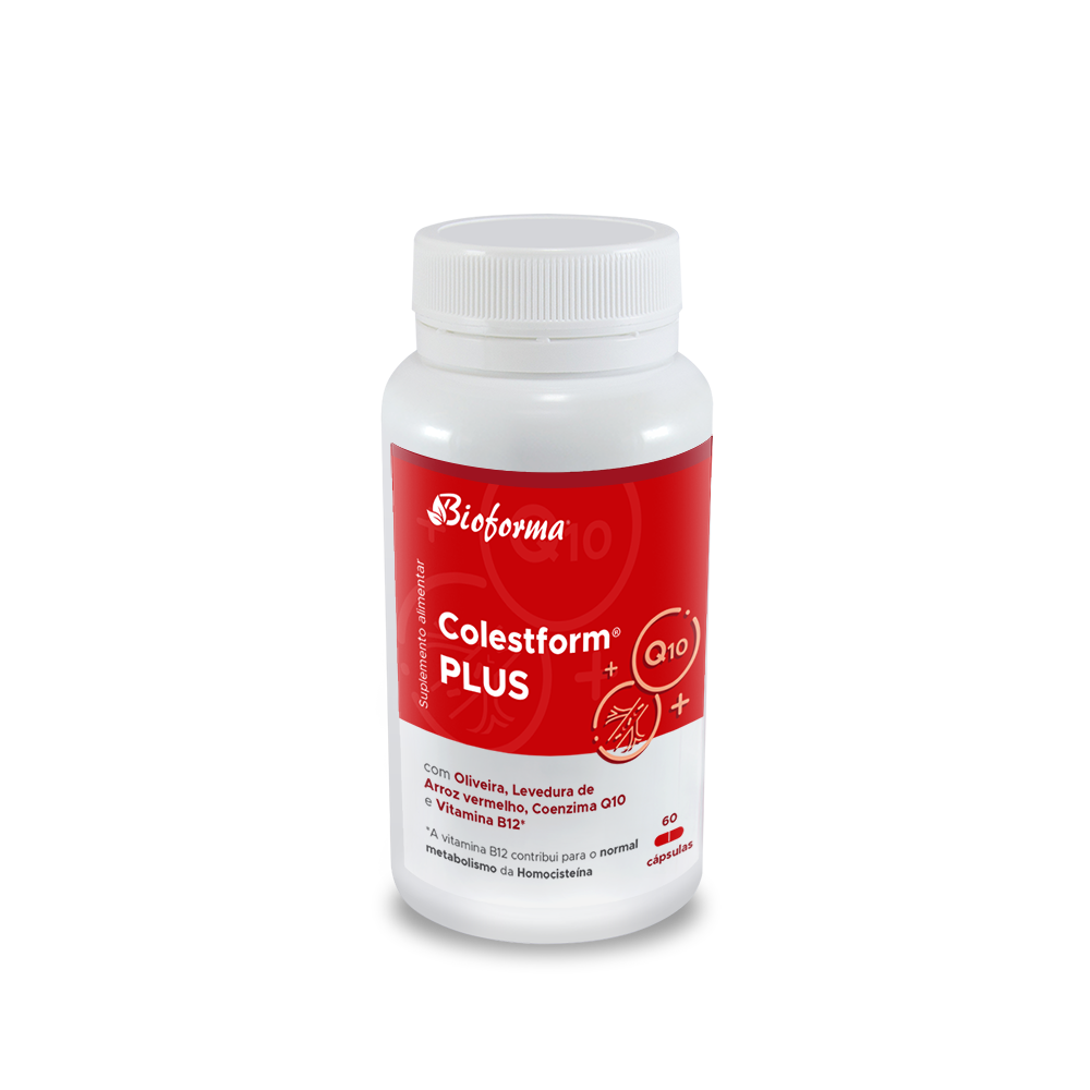 Monascus purpureus) e enriquecido com extrato de oliveira, Coenzima Q10 e Vitamina B12, Colestform Plus, da Bioforma, é um suplemento natural de características únicas. O efeito sinérgico entre plantas e substâncias, amplamente estudadas, permite-nos obter um suplemento que contribui para o normal metabolismo da homocisteína.