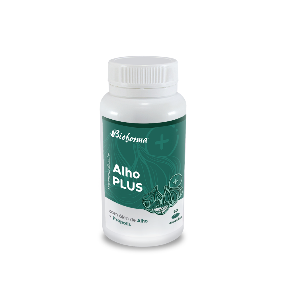 Alho Plus, da Bioforma, é um suplemento natural composto por óleo de Alho enriquecido com extrato de própolis. Cada cápsula de Alho Plus, com Própolis, fornece 0,54mg de alicina (o principal componente ativo do alho).