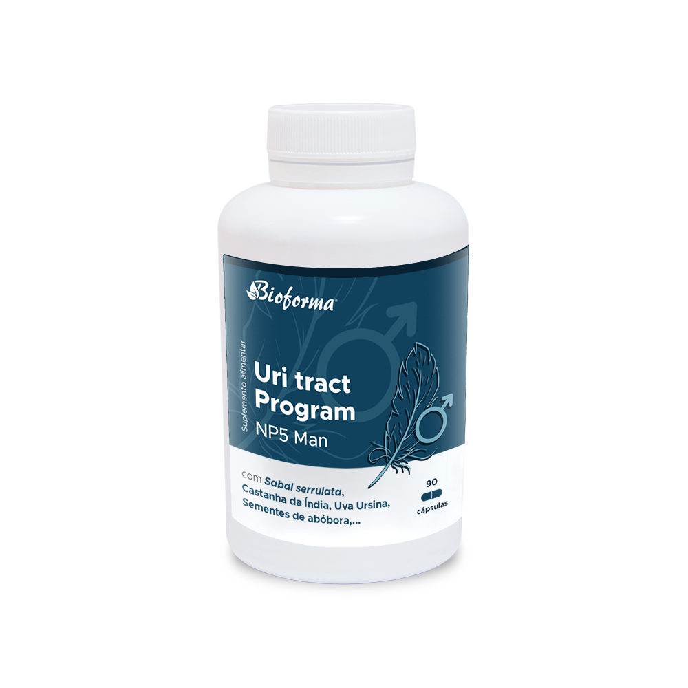 Suplemento natural à base de Sabal serrulata, Castanha da Índia, Pygeum africanum, Uva ursina, Vara de ouro, Sementes de Abóbora e Barbas de milho, entre outros, URI TRACT PROGRAM NP5 MAN vem enriquecido com Gluconato de Zinco, uma fonte natural de Zinco elemento. O Zinco, além de contribuir para a proteção das células contra as oxidações indesejáveis, também contribui para a manutenção de níveis normais de testosterona no sangue.