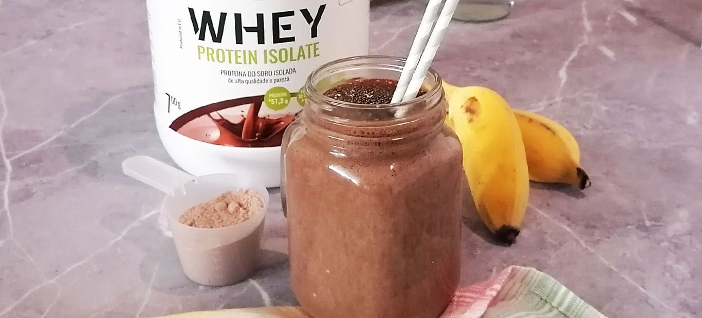 - 1 scoop (colher medida) de Proteína whey isolada de chocolate
