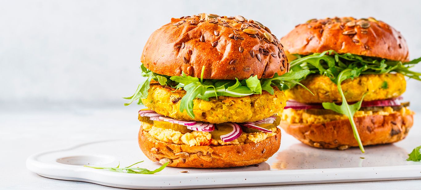 Hambúrguer vegan de grão e tahini