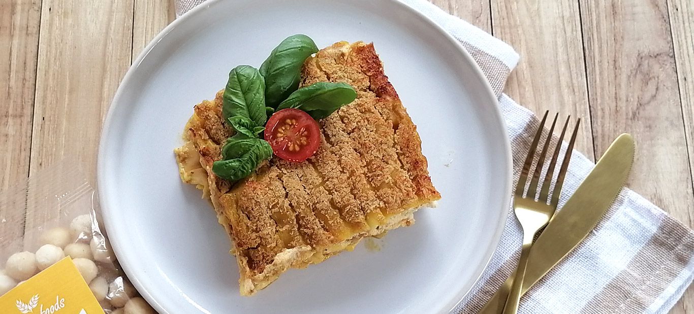 Lasanha de legumes com queijo de macadâmia