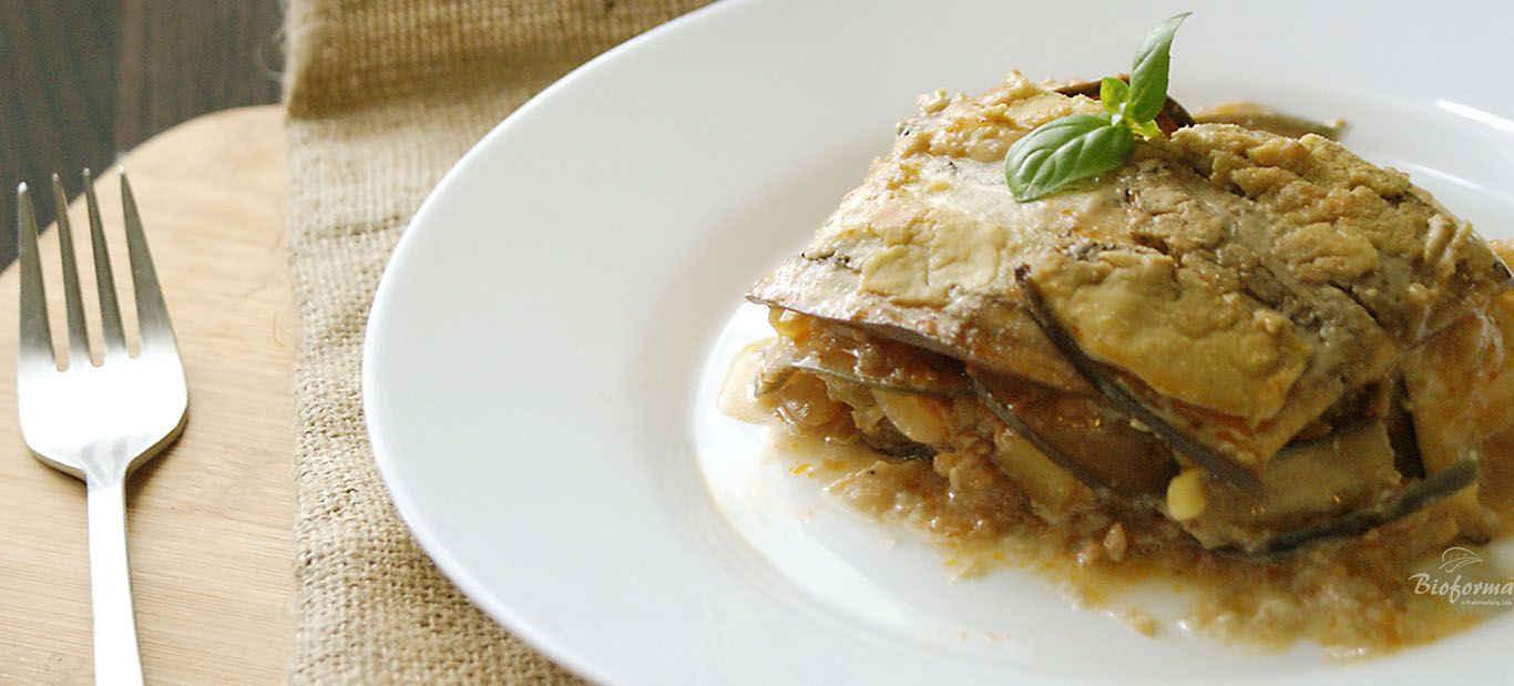 Lasanha vegan de beringela e soja
