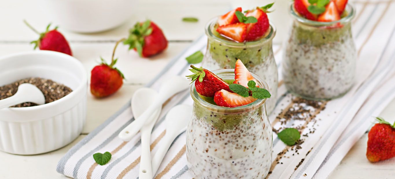 Num frasco de vidro hermético junte meia chávena de chá de flocos de quinoa, o iogurte, a chia, a pasta de tâmaras e misture. Adicione o kiwi e morangos laminados no topo e leve ao frigorífico. Consuma frio.